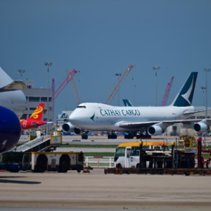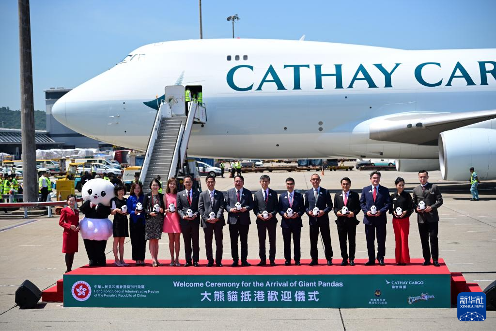 9月26日,运送第三对中央赠港大熊猫“安安”“可可”的专机抵达香港国际机场。