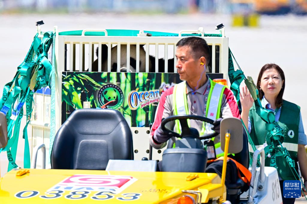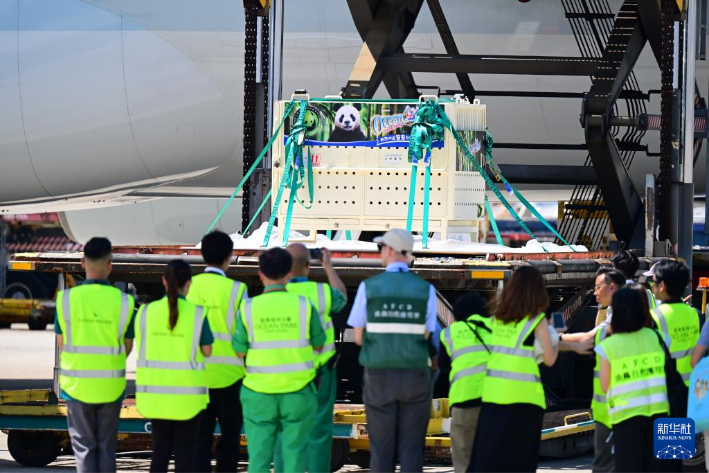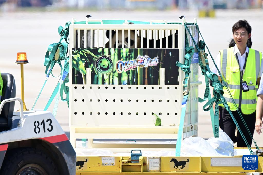当日,第三对中央赠港大熊猫“安安”“可可”搭乘专机抵达香港国际机场,随后换乘专车抵达位于香港海洋公园的新家。