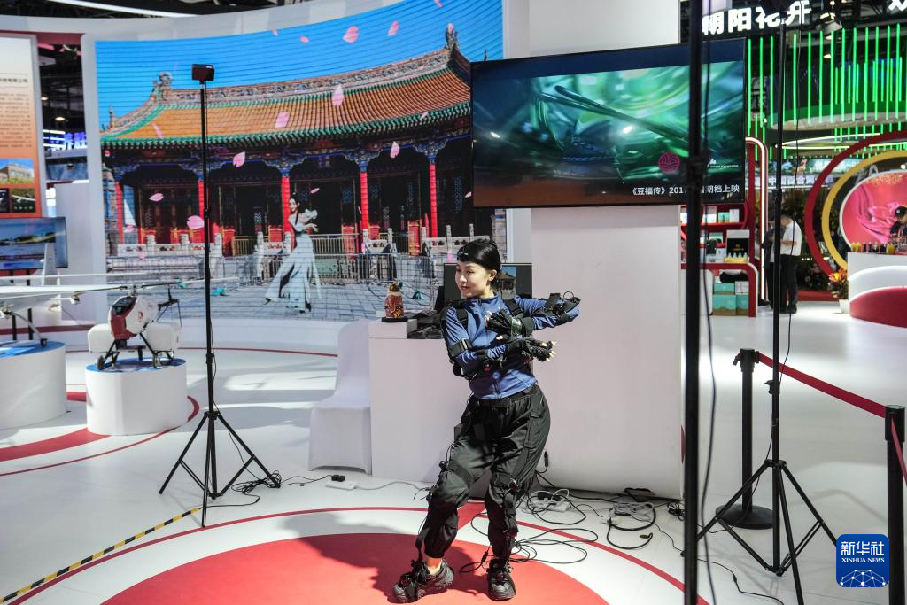 9月26日,工作人员在辽洽会消费创新主题展览上展示动作捕捉设备。