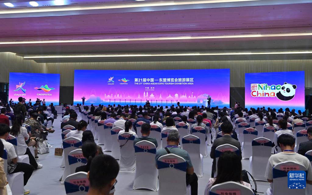 当日,第21届中国—东盟博览会旅游展区在广西桂林国际会展中心开幕。本届旅游展区以“加深文旅交融,共建‘一带一路’”为主题,展览总面积6万平方米,共吸引43个国家和地区的旅游部门及企业参加。