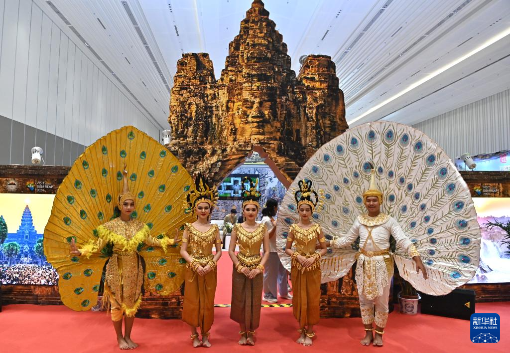 9月26日,柬埔寨演员在第21届中国—东盟博览会旅游展区展示民族风情。