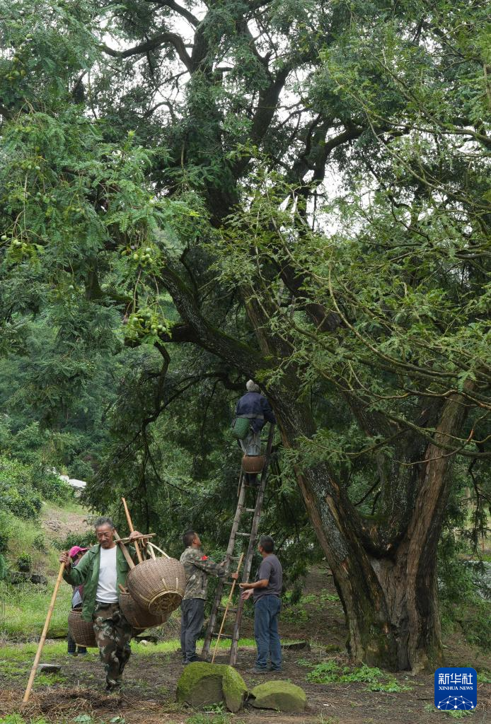 近日,浙江省诸暨市特色农产品香榧迎来集中采摘期。在诸暨市赵家镇香榧国家森林公园,榧农抢抓农时采摘青果,进行剥皮、堆沤等工序,力争在十月中旬完成炒制并上市销售。