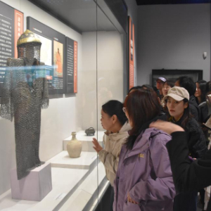 9月27日,游客在新疆塔城红楼博物馆参观。