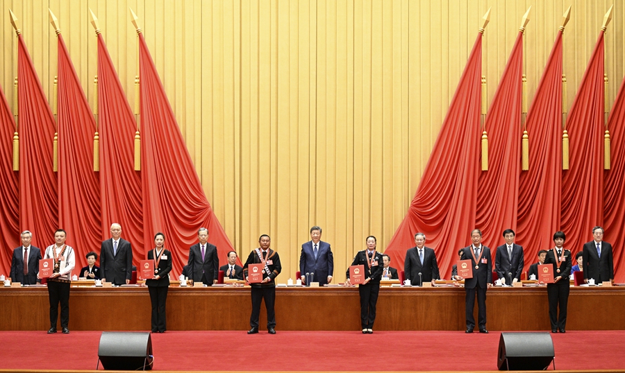 9月27日,全国民族团结进步表彰大会在北京举行。这是习近平等为受表彰的模范个人和模范集体代表颁奖。