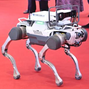 9月27日,观众在中国—东盟博览会上参观机器狗。