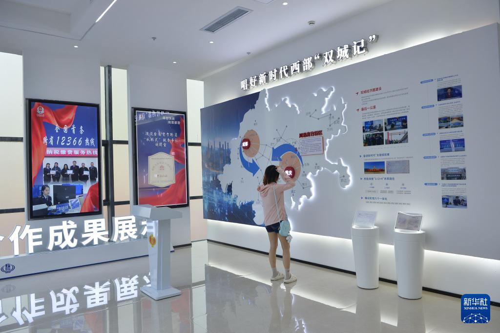 9月26日,观众在川渝高竹新区税费征管服务中心观看展览。