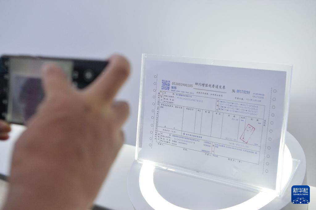9月26日,观众在川渝高竹新区税费征管服务中心拍摄一张发票复印件。这张由川渝高竹新区税费征管服务中心开出的首张增值税普通发票,其存根原件已被中国国家博物馆收藏。2021年10月20日,川渝高竹新区税费征管服务中心正式运营,该中心能办理四川和重庆的涉税事项,实现跨省份税务数据的共联共享。