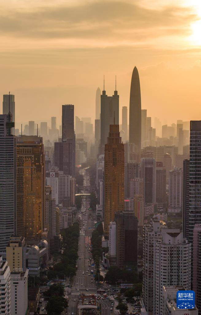 9月19日在深圳市罗湖区拍摄的深南大道风光(无人机照片)。