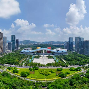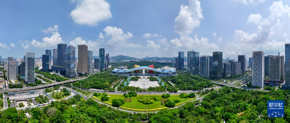 这是贯穿深圳福田CBD、市民中心、莲花山公园的深圳中轴线(8月27日摄,无人机全景照片)。