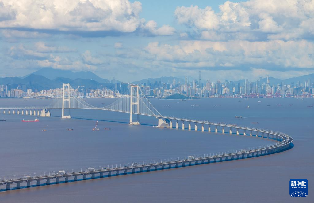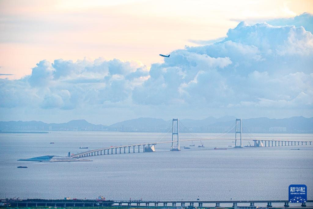 6月23日,从深圳宝安国际机场起飞的飞机飞过深中通道。