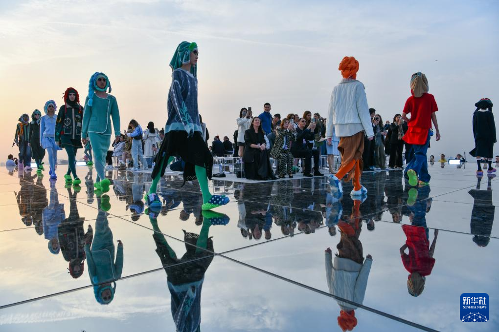 3月20日,在深圳·米兰双城时尚周举办期间,在深圳目前最高的露天观景平台——深圳湾超级总部基地深湾睿云中心80层的“天空之镜”上,中外嘉宾一起欣赏时装秀。