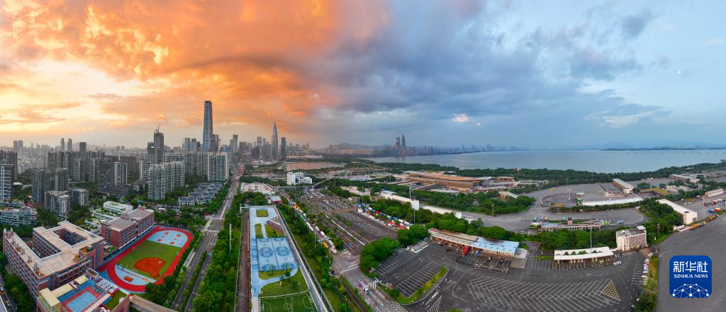 9月15日在深圳市南山区拍摄的深圳湾口岸周边风光(无人机照片)。