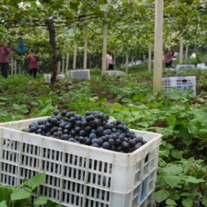 刺葡萄是中国特有的葡萄品种,2004年徐豪的父亲徐孔飞将本地高山上的野生刺葡萄引种下山,通过土地流转开起了葡萄果园。徐豪接手葡萄园后,大力发展葡萄采摘游,并开发葡萄汁、葡萄酒、葡萄籽精油等产品。目前葡萄园已扩展到500亩,帮助村民就近就业、增收共富,成为当地共富的金名片。