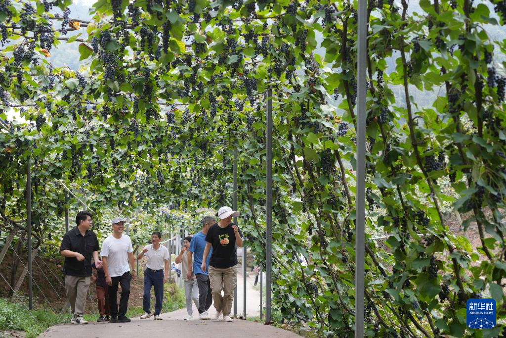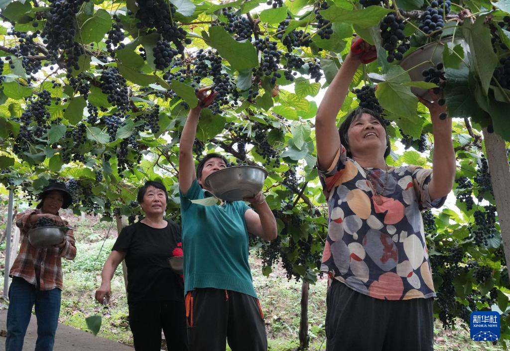 9月26日,附近的农户在葡萄园里采摘刺葡萄。