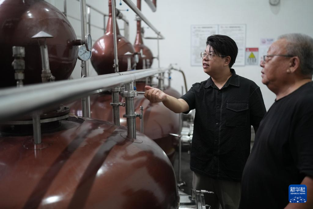 9月26日,徐豪在自己的酒厂查看葡萄酒蒸馏的压力和温度。