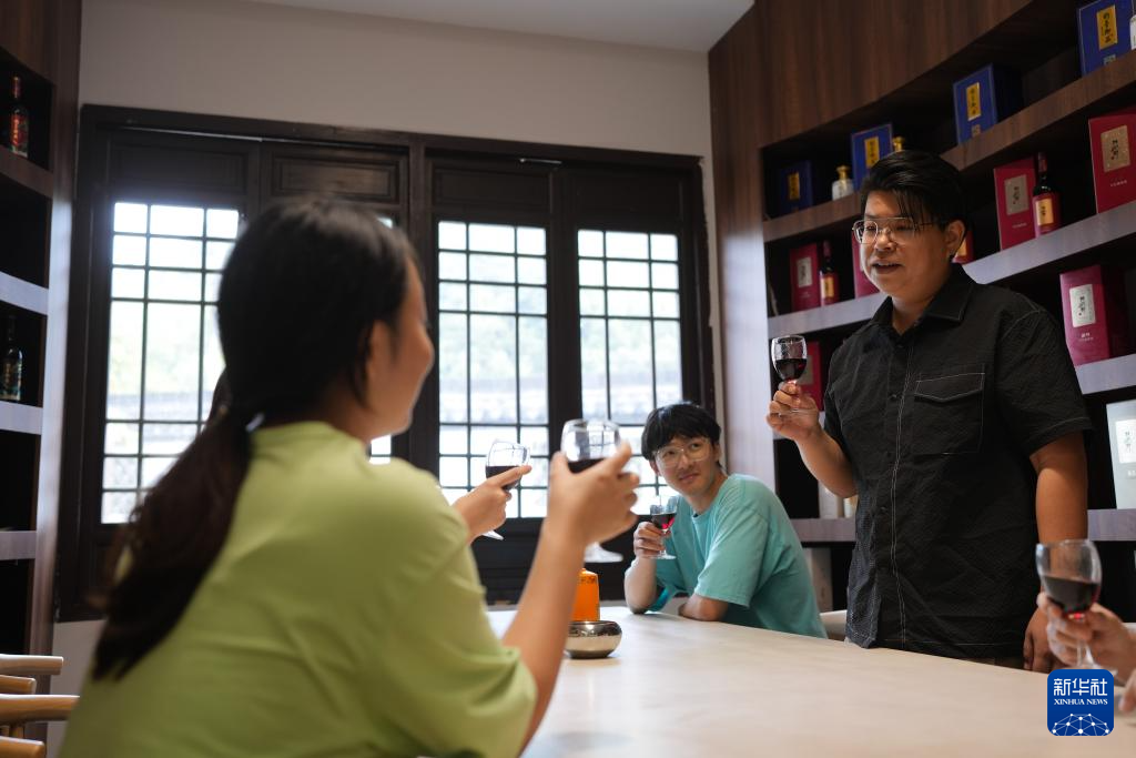 9月26日,徐豪在一场品鉴会上邀请客人品尝刺葡萄酿制的葡萄酒。
