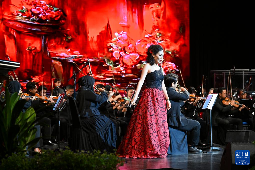 9月26日,马来西亚吉隆坡,来自中国中央歌剧院的歌手在“歌颂友谊·唱响未来”马中建交50周年声乐音乐会上演出。
