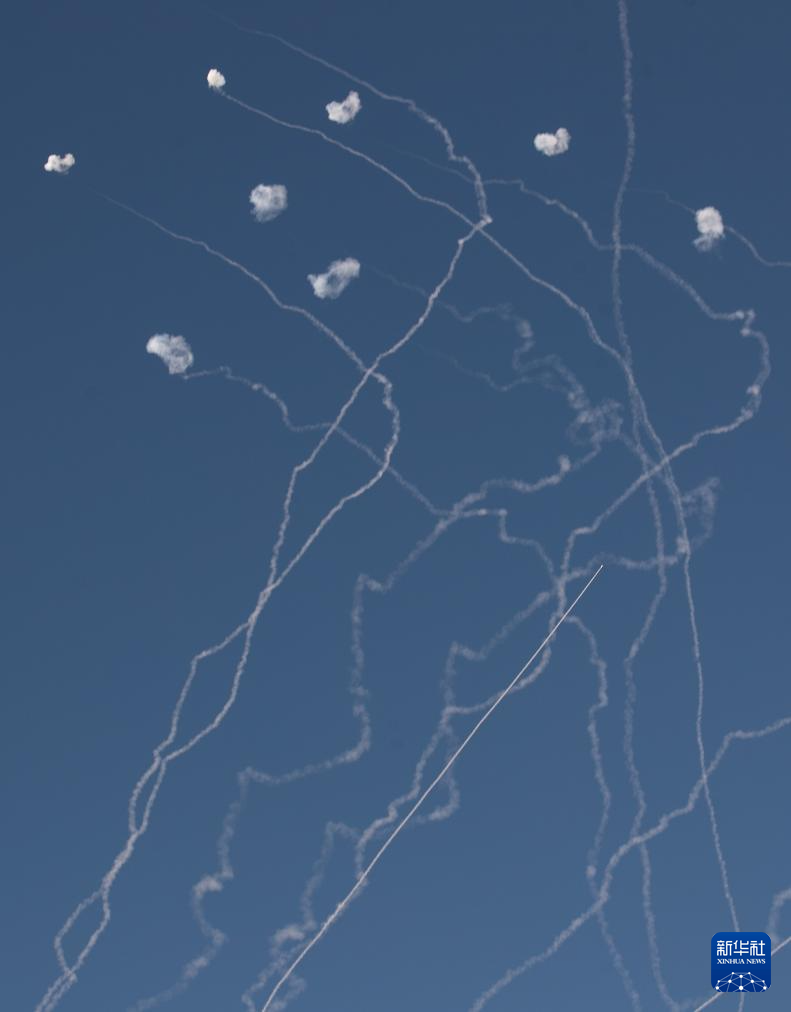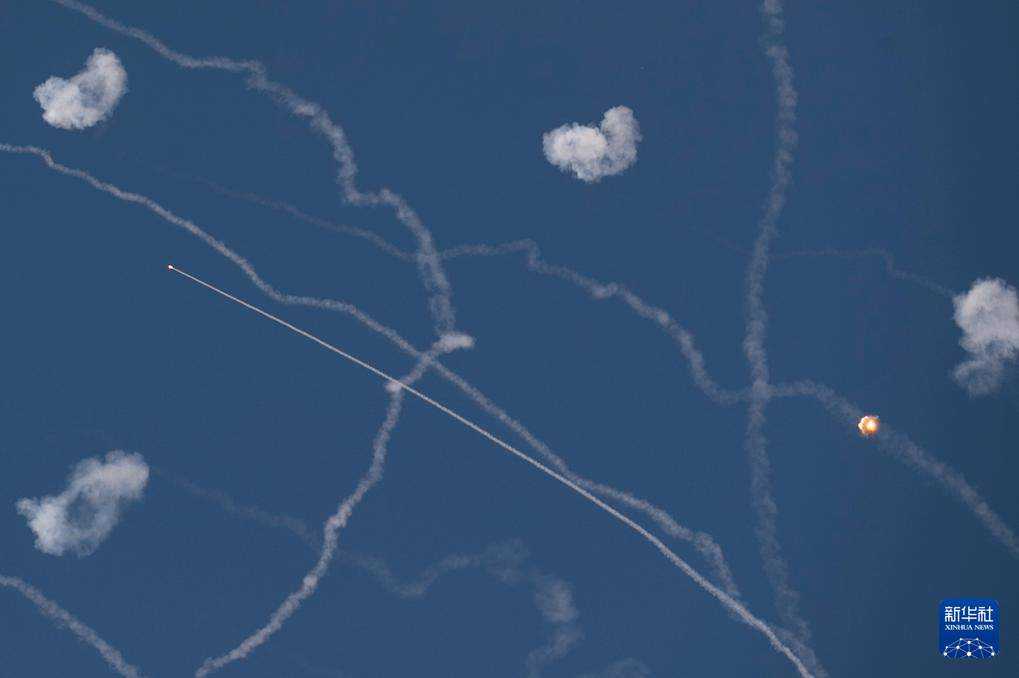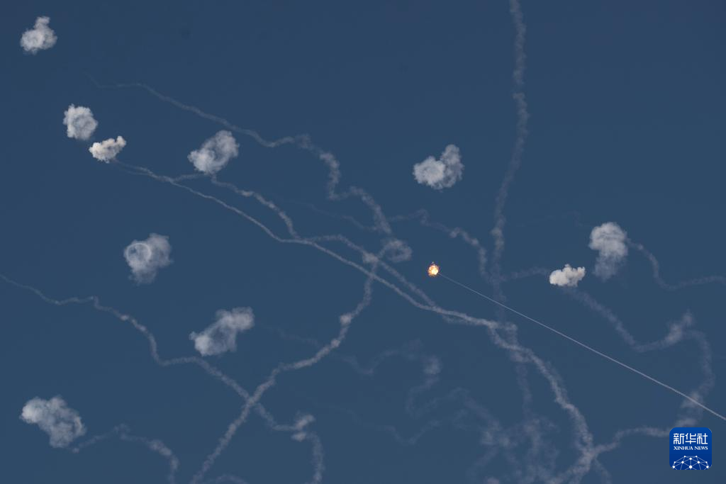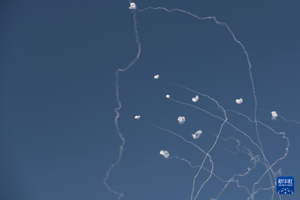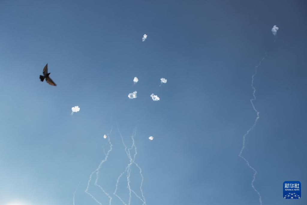 9月26日,在以色列北部塞费德,火箭弹被以色列防空系统拦截。