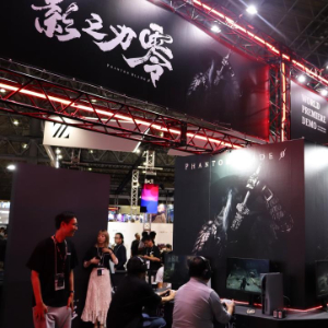 9月26日,人们在日本千叶举行的东京电玩展上试玩中国游戏《影之刃零》。