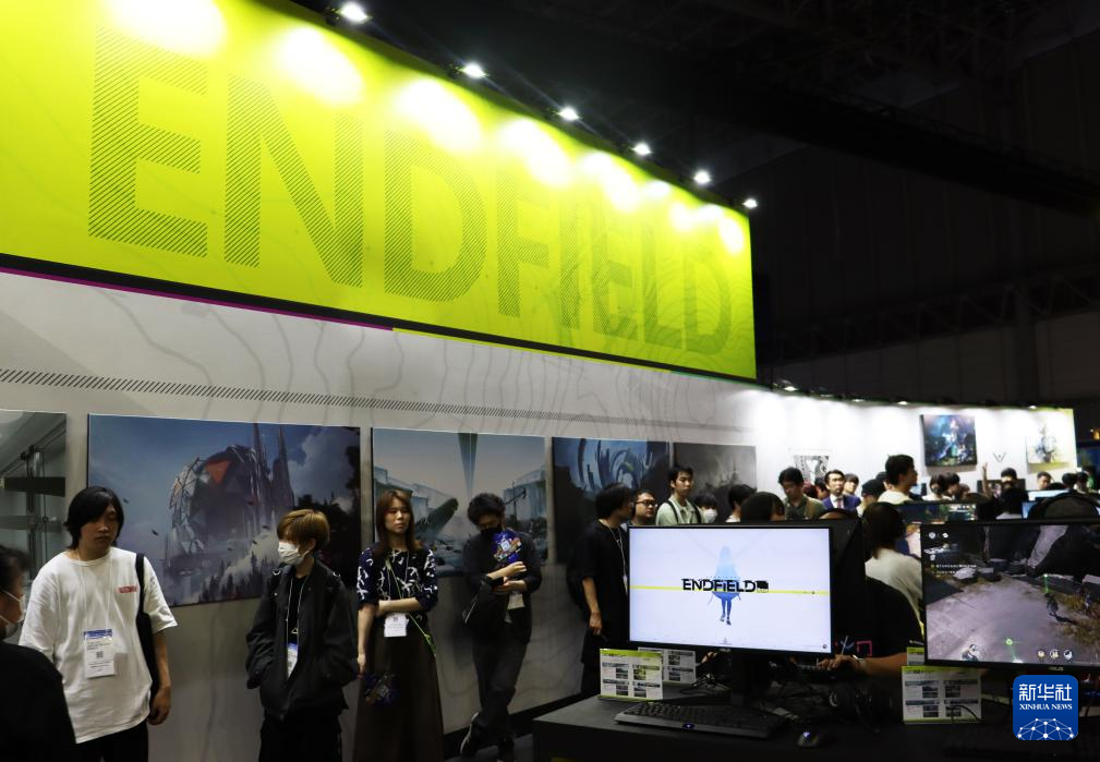 9月26日,人们在日本千叶举行的东京电玩展上排队试玩中国游戏《明日方舟:终末地》。
