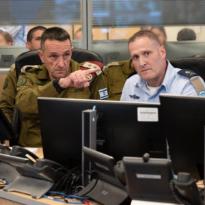 9月27日,在以军空袭黎巴嫩真主党总部期间,以色列国防军总参谋长哈莱维(左)在以空军一处基地内。