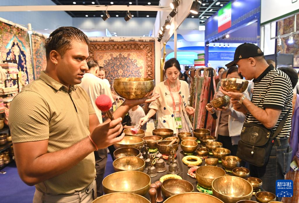 9月28日,在广西南宁国际会展中心,消费者在选购来自也门的商品。