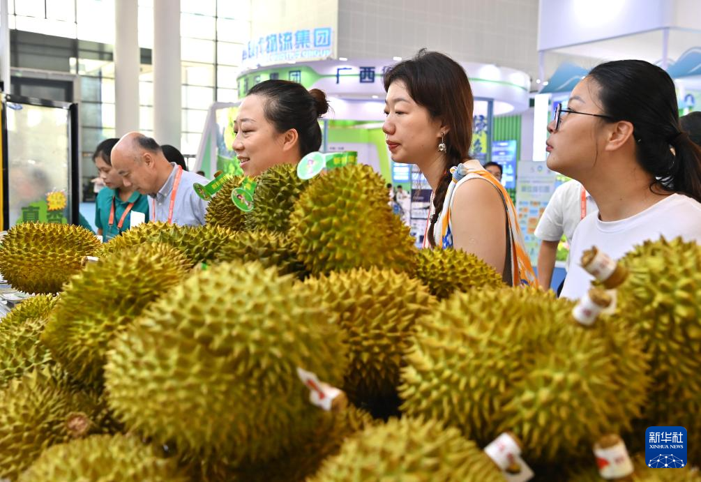 9月28日,观众在第21届中国—东盟博览会上挑选马来西亚榴莲。