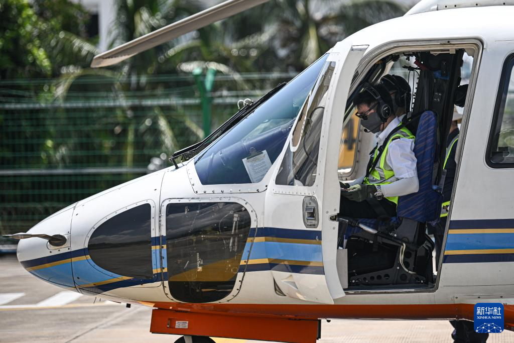 9月29日,执行首飞的直升机从三亚天涯直升机场飞赴广东湛江。