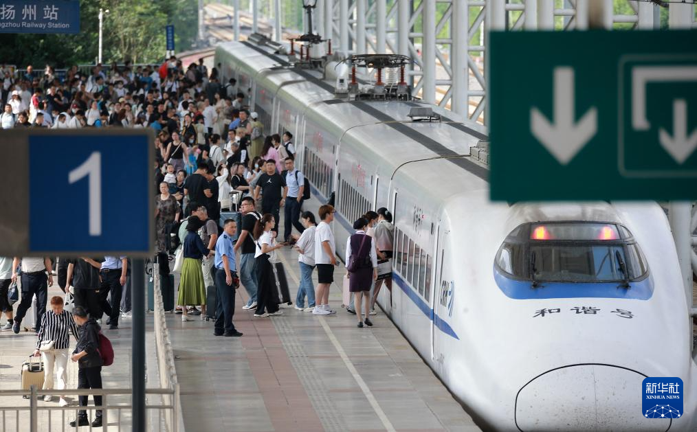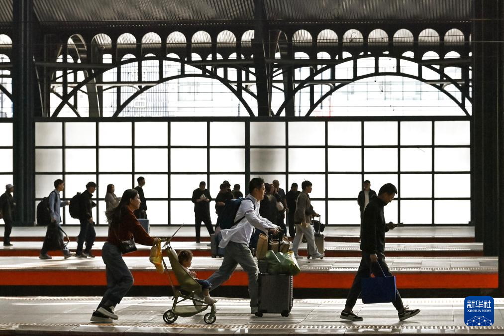9月29日,旅客在江苏扬州火车站站台乘车出行。