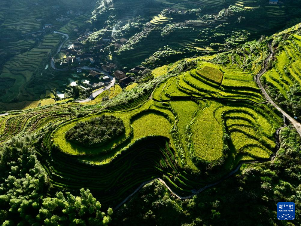 这是9月29日拍摄的福建省武夷山市吴屯乡后源村的稻田(无人机照片)。
