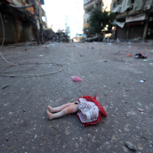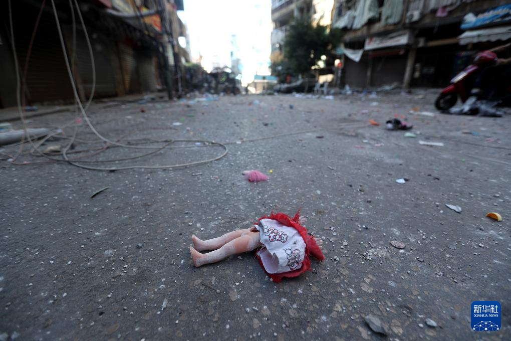 这是9月29日在黎巴嫩首都贝鲁特南郊拍摄的地面上的玩偶。