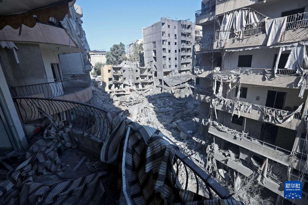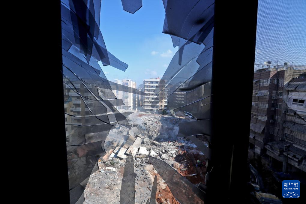 这是9月29日在黎巴嫩首都贝鲁特南郊拍摄的以军空袭后的景象。