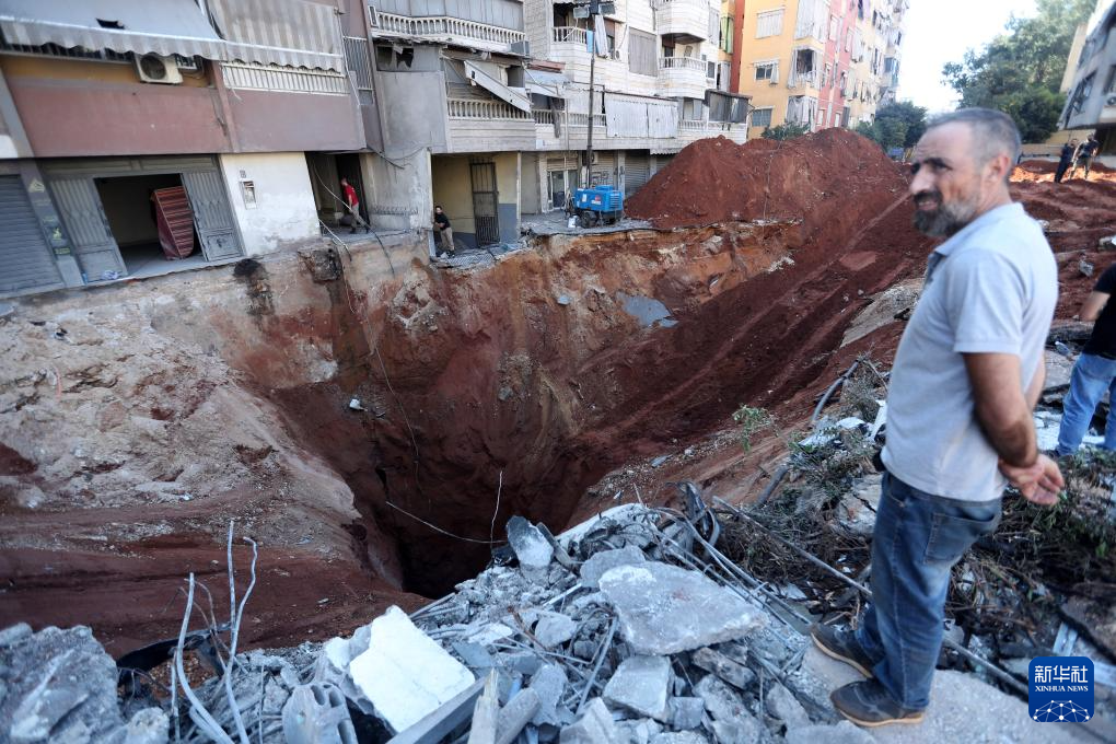 9月29日,在黎巴嫩首都贝鲁特南郊,一名男子站在空袭后的街道上。