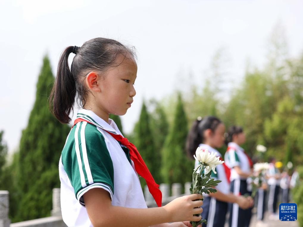 9月30日,在山东省青州市烈士陵园,小学生向烈士敬献鲜花。