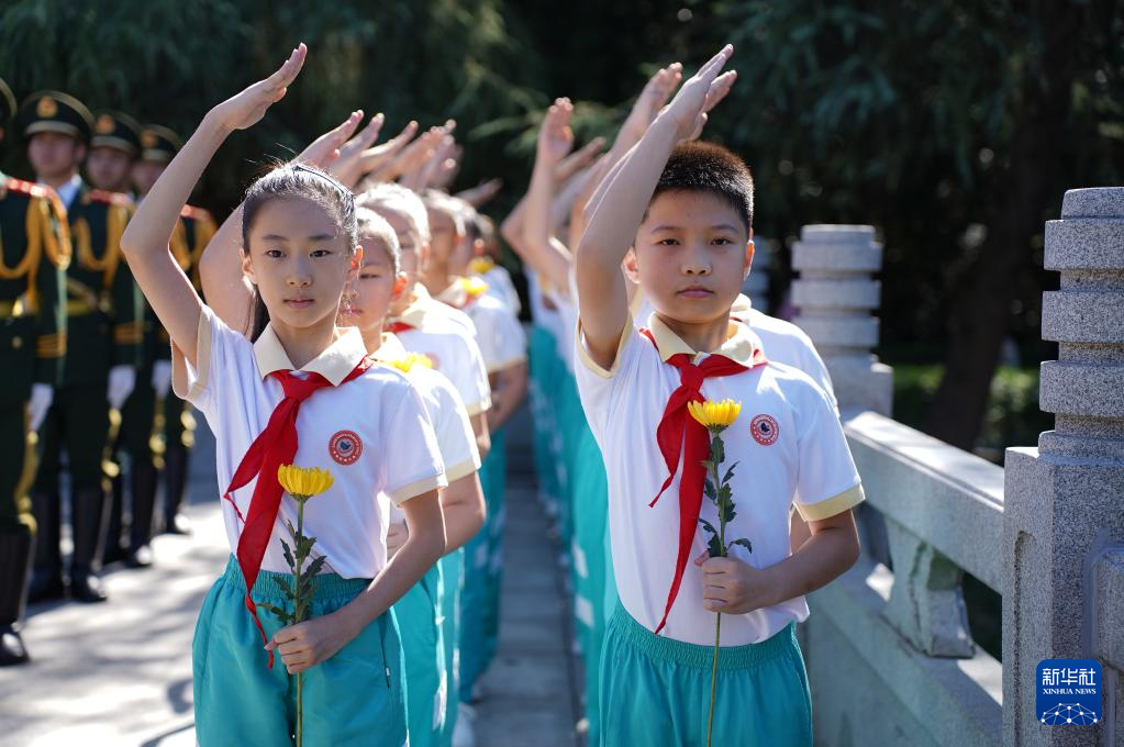 9月30日,在浙江省嘉兴市革命烈士陵园,小学生参加缅怀英烈活动。