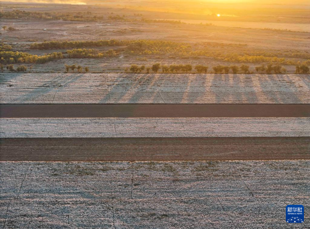这是9月29日在新疆生产建设兵团第六师五家渠市拍摄的秋日棉田(9月29日摄,无人机照片)。