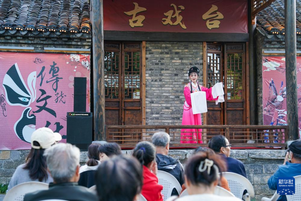 10月1日,游客在位于江苏省淮安市盱眙县的第一山历史文化街区观看戏曲表演。