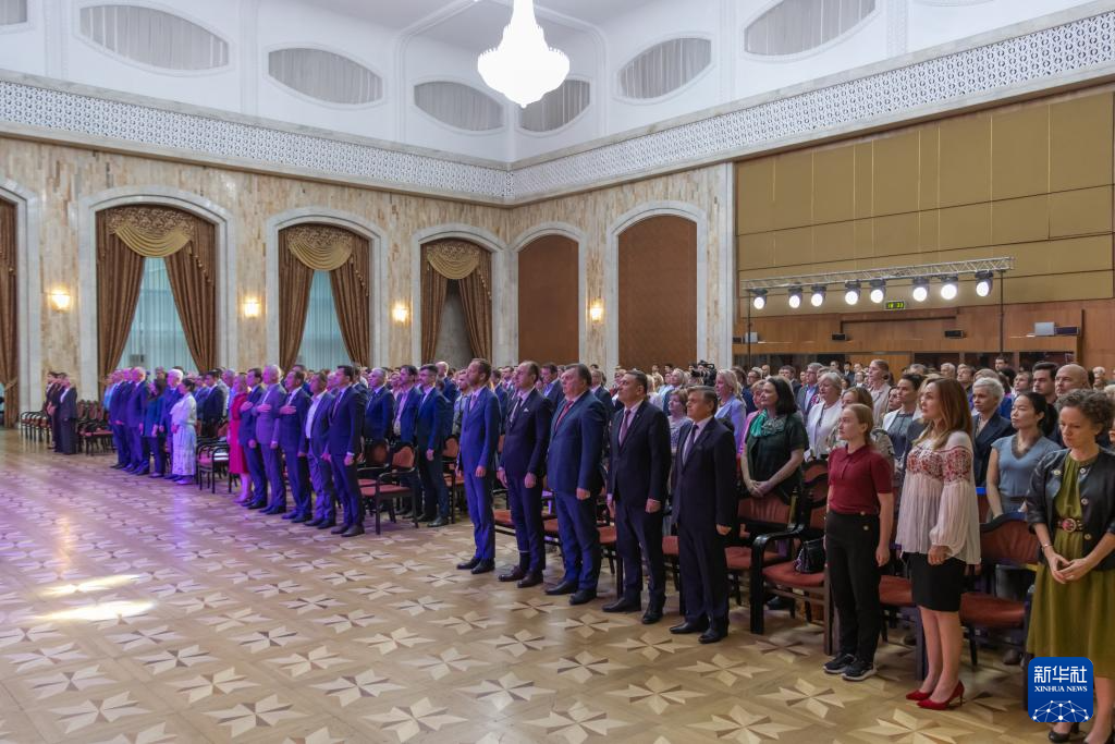 9月25日,在摩尔多瓦基希讷乌,嘉宾参加中国驻摩尔多瓦大使馆国庆75周年招待会。