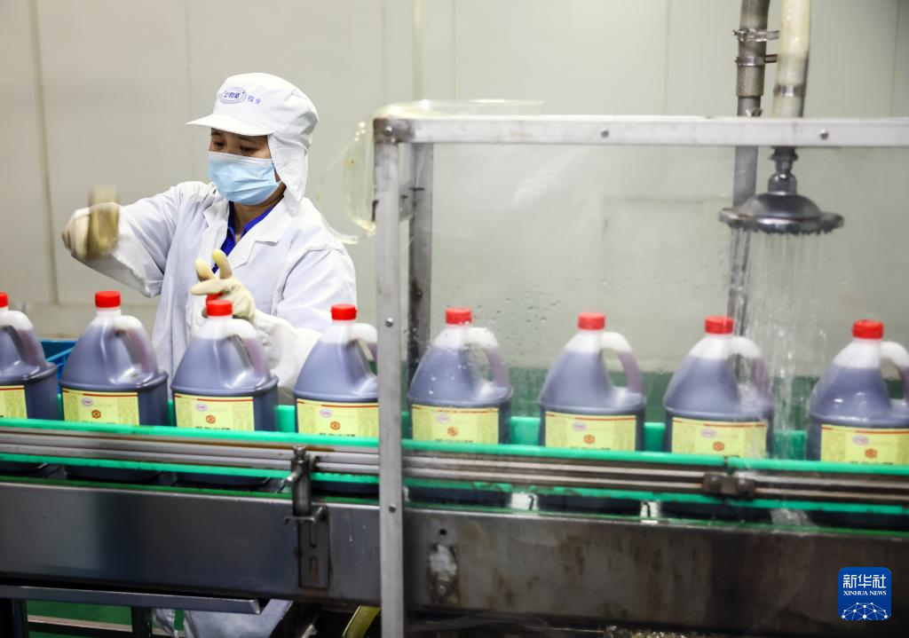 9月29日,工人在位于北京丰台区的龙门醋业有限公司包装车间工作。