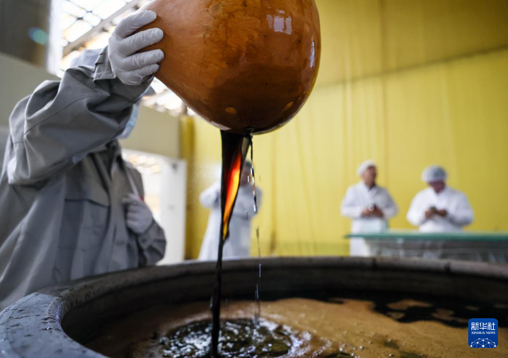 9月29日,在位于北京丰台区的龙门醋业有限公司制醋车间,质检员检查龙门米醋窖藏老醋的感官和风味情况。