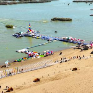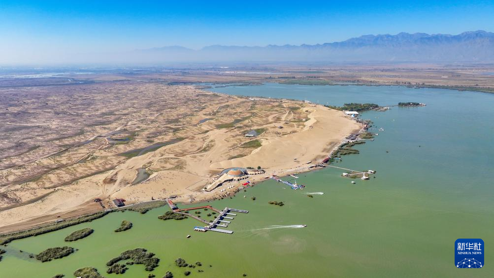 当日是国庆假期的第二天,许多游客来到宁夏石嘴山市沙湖景区,感受沙漠与湖泊相依的独特景观。