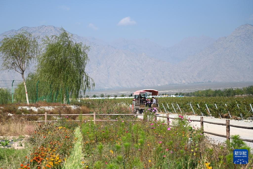 10月4日,游客在图兰朵葡萄酒小镇观赏葡萄种植园。