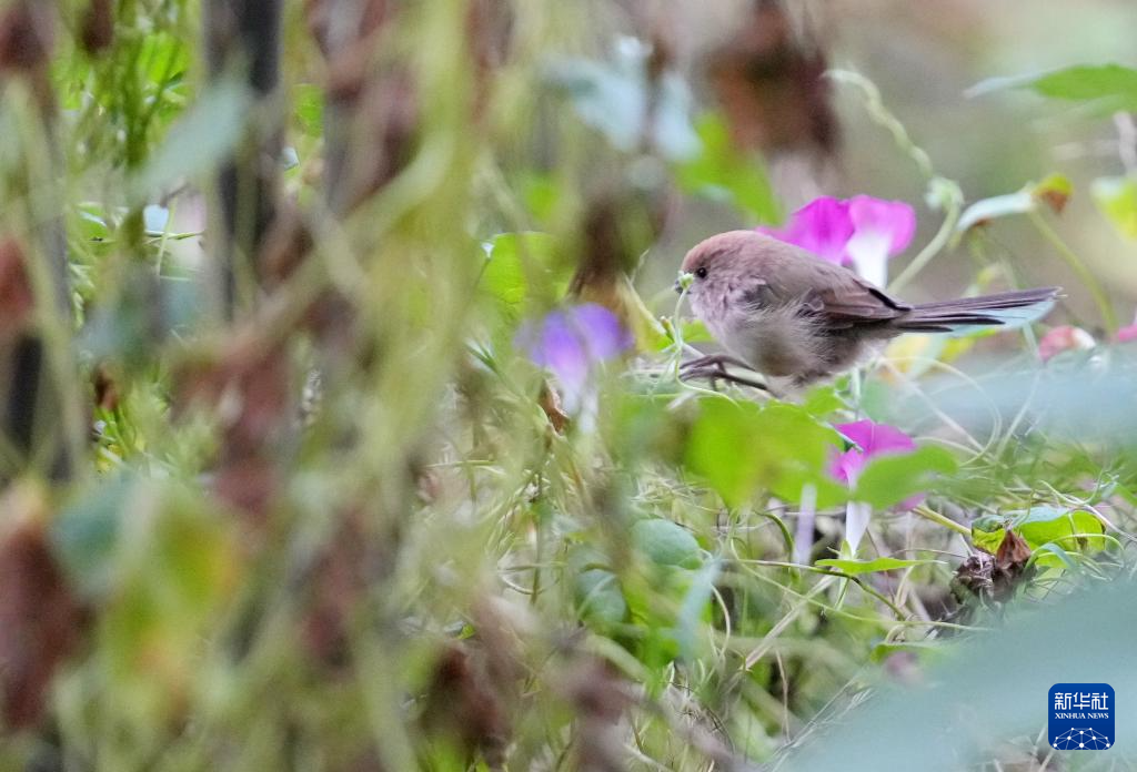在济南市市中区一处居民小区拍摄的棕头鸦雀(10月4日摄)。