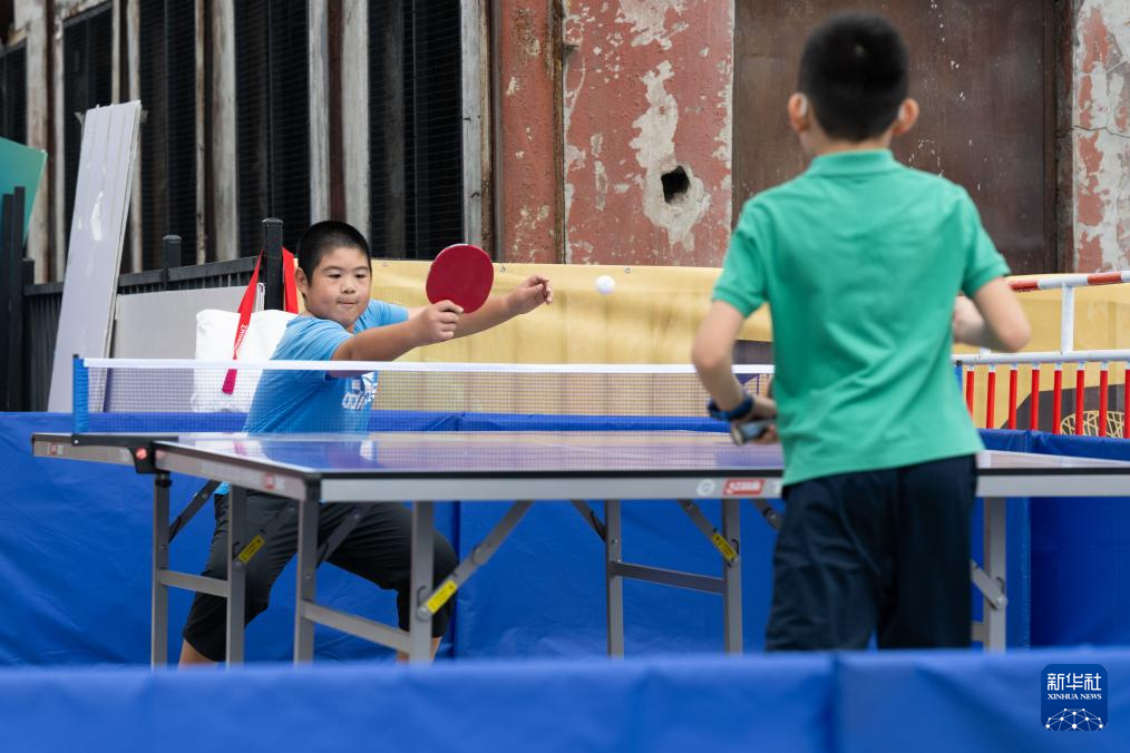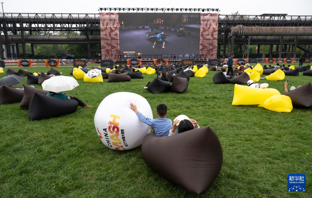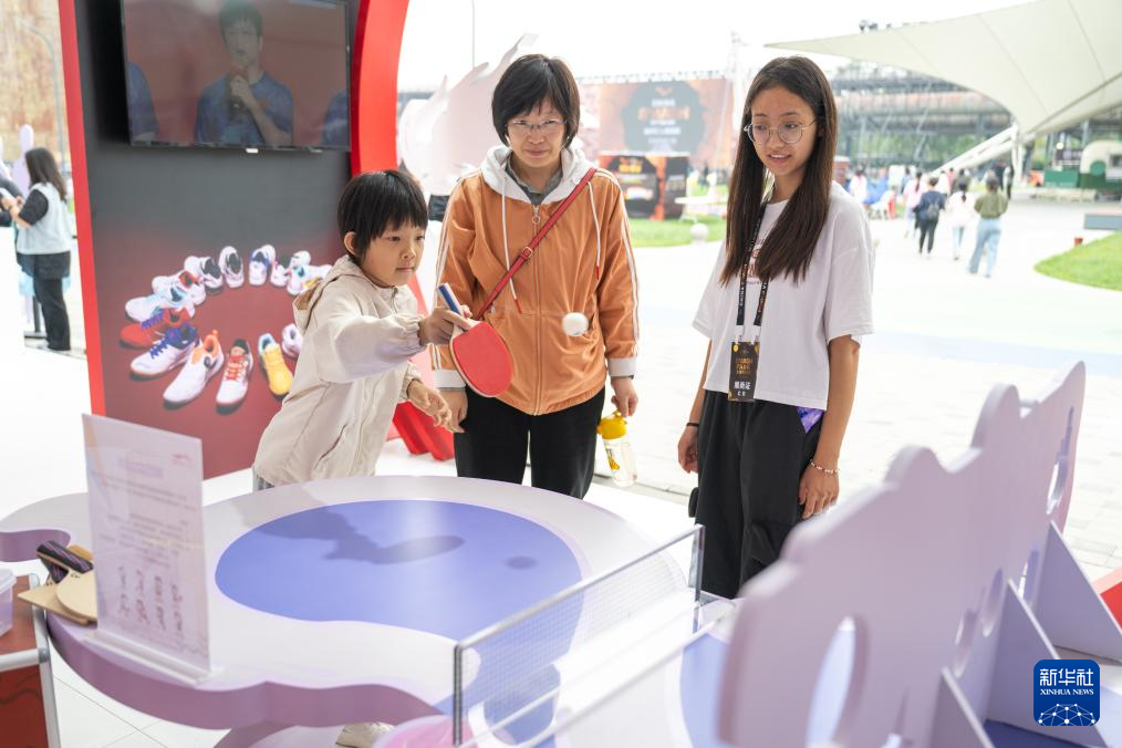 9月28日,人们在首钢园大满贯公园互动娱乐区体验乒乓球运动。 新华社记者 肖艺九 摄pagebreak