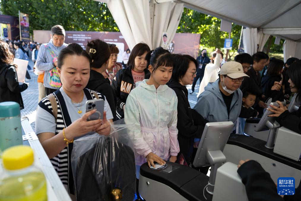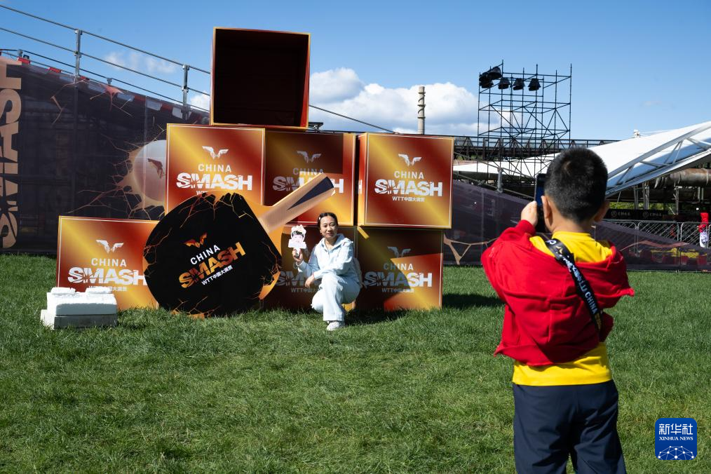 10月3日,观众在中国大满贯场馆外留影。 新华社记者 张晨霖 摄pagebreak
