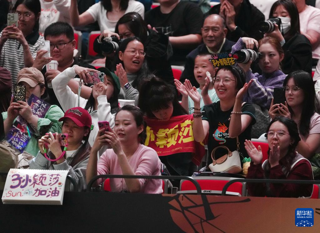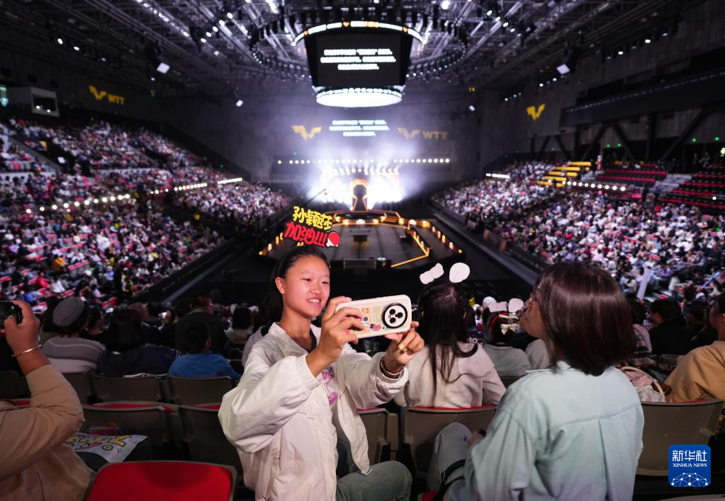 10月3日,观众在现场为运动员孙颖莎加油。 新华社记者 张晨霖 摄pagebreak