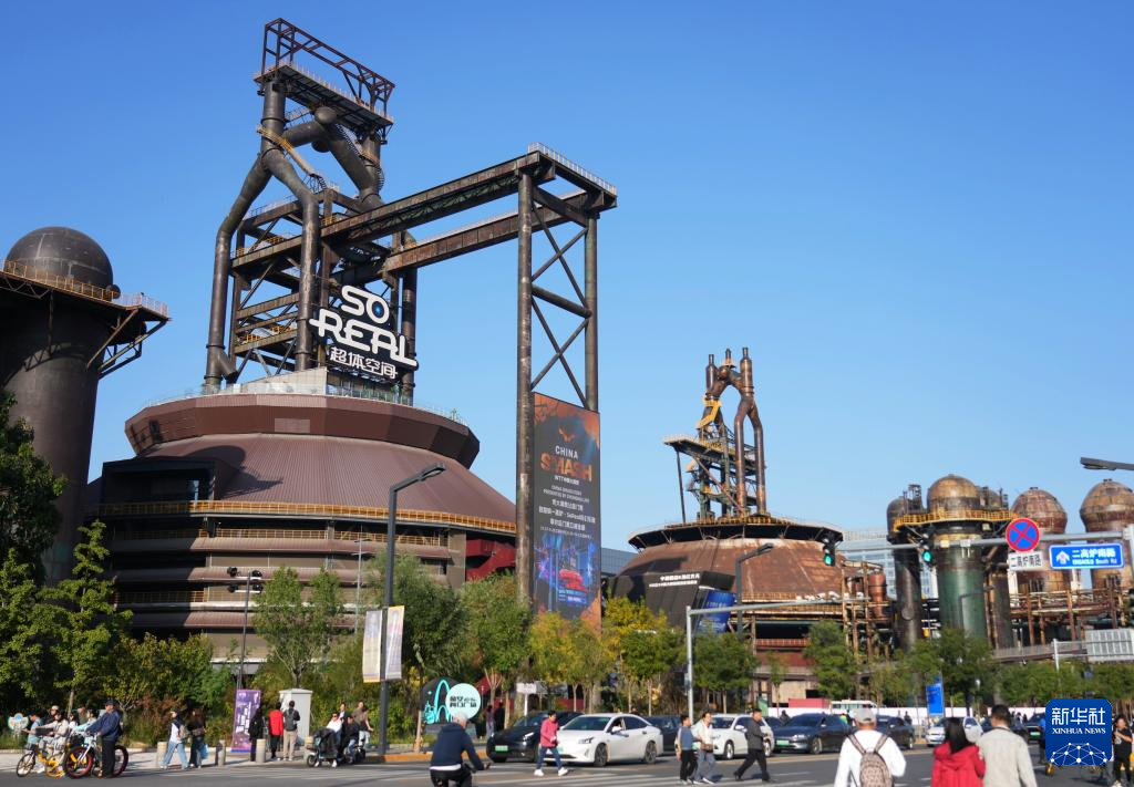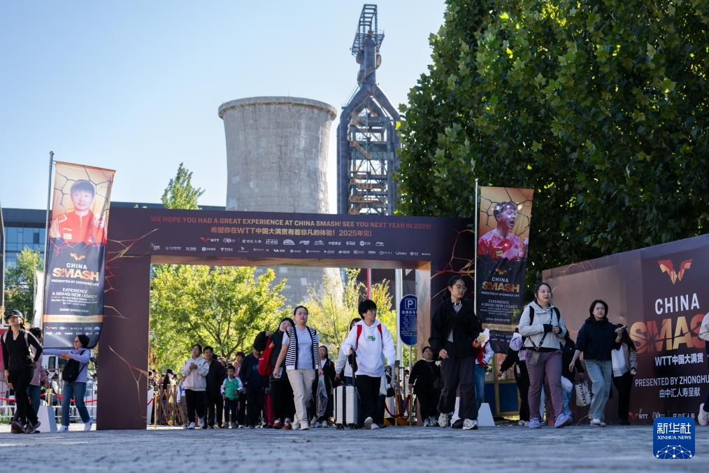 10月4日,人们在首钢园漫步,中国大满贯的赛事宣传随处可见。 新华社记者 宋彦桦 摄pagebreak