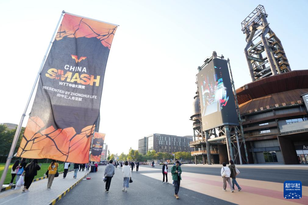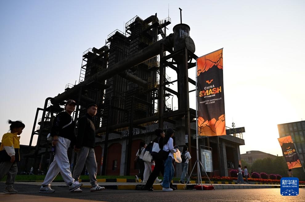 10月3日,人们在首钢园漫步,中国大满贯的赛事宣传随处可见。 新华社记者 张晨霖 摄