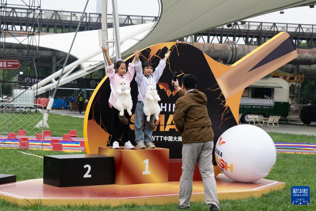 9月28日,小朋友在中国大满贯赛事用球模型前玩耍。 新华社记者 肖艺九 摄pagebreak