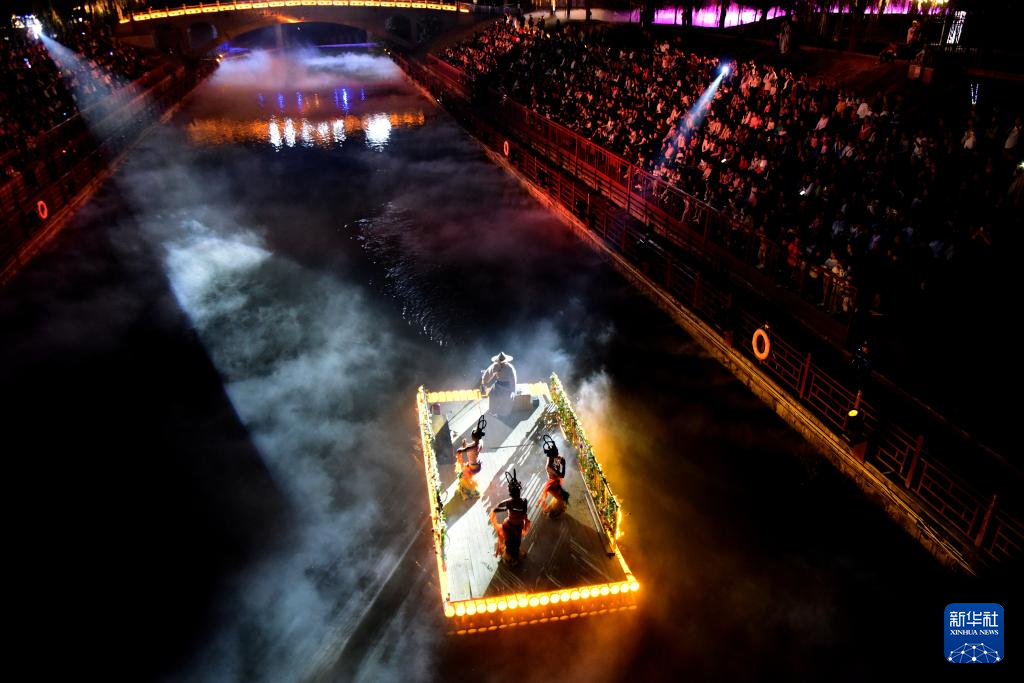 10月4日,河南省巩义市杜甫故里景区演员在表演实景剧《归乡》。